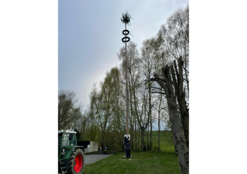 Der Schützenverein Enzian Frankenreuth stellt den Maibaum am Schützenhaus in Frankenreuth auf.