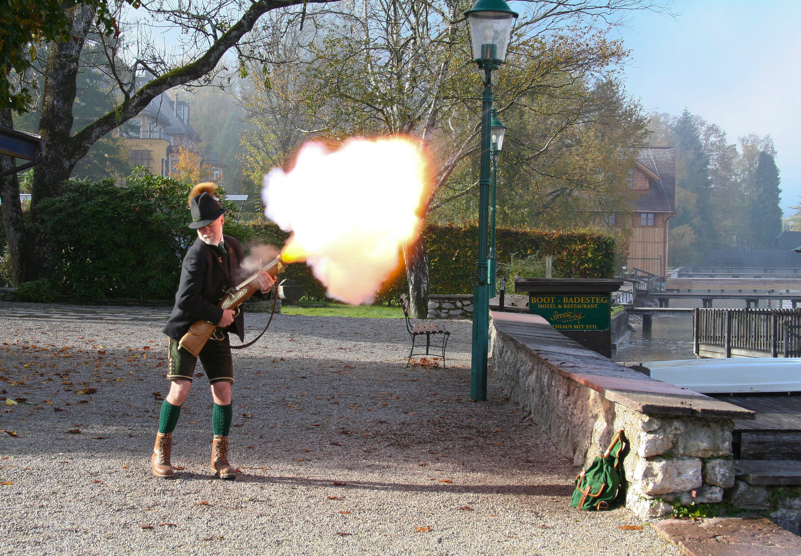 Auferstehungsschießen der Prangerschützen beim Friedhof in Strobl.
