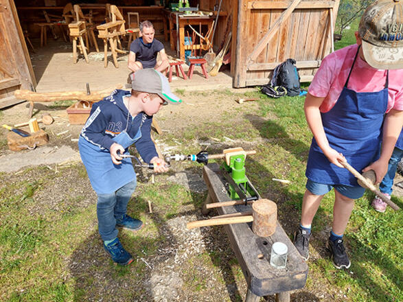 Wir durchqueren den Naturpark und erkunden, wie die vielfältige Kulturlandschaft entstand und wer sie gestaltete. In der Vergangenheit waren intakte Waldränder mit Hasel und Birke bedeutende Materiallieferanten für das alte Handwerk am Hof. Wir lernen, was aus den verschiedenen Gehölzen hergestellt wurde, und üben uns in traditionellen Arbeitstechniken wie der Haselbearbeitung auf der Hoanzl-Goaß.