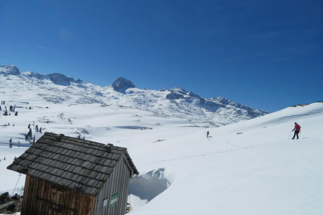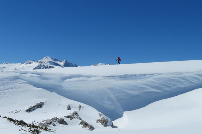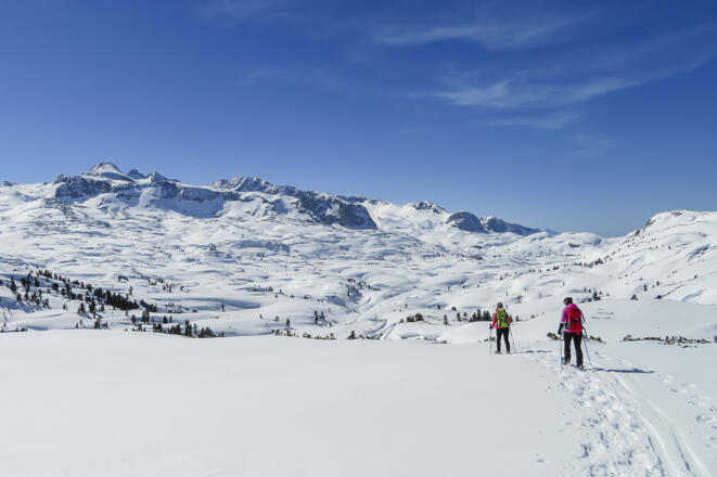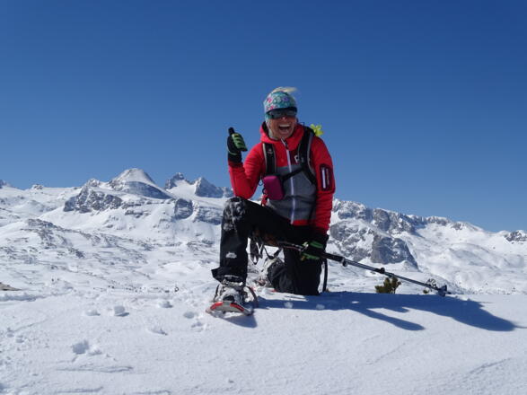 Nahezu mühelos erkundest du mit Martha auf dieser geführten Schneeschuhwanderung die faszinierende Karstlandschaft am Dachstein Krippenstein.