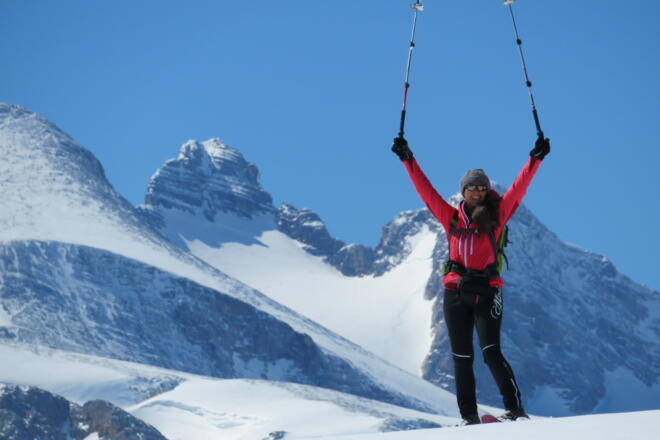 warme Kleidung: Skiunterwäsche, Skistutzen, Fleecepulli, Softshelljacke, warme (Goretex)-Jacke, warme Outdoor-Hose (keine Baumwollhose), Haube, Handschuhe, Sonnenbrille und -creme