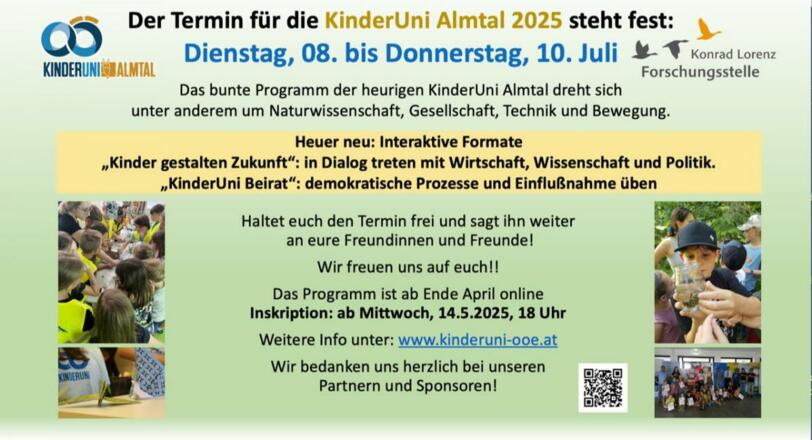 Anmeldung und Info unter: info@kinderuni-ooe.at