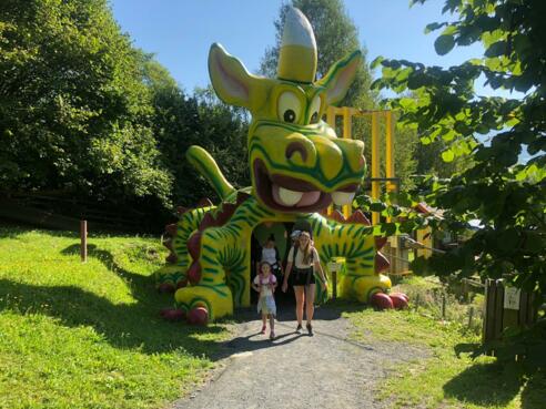 Klein und Groß stellen sich am Energie-Erlebnisweg Trebesing mit Hilfe des Drachens der Aufgabe, verschiedene Rätsel zu lösen und ein/e Klimaheld/in zu werden.