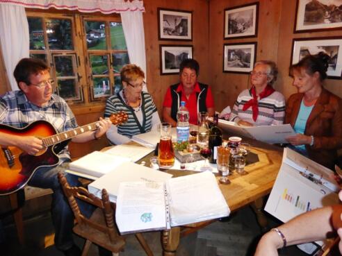 neuer und alter Volkslieder, Neuzugänge mit oder ohne Instrumente sind immer willkommen.
