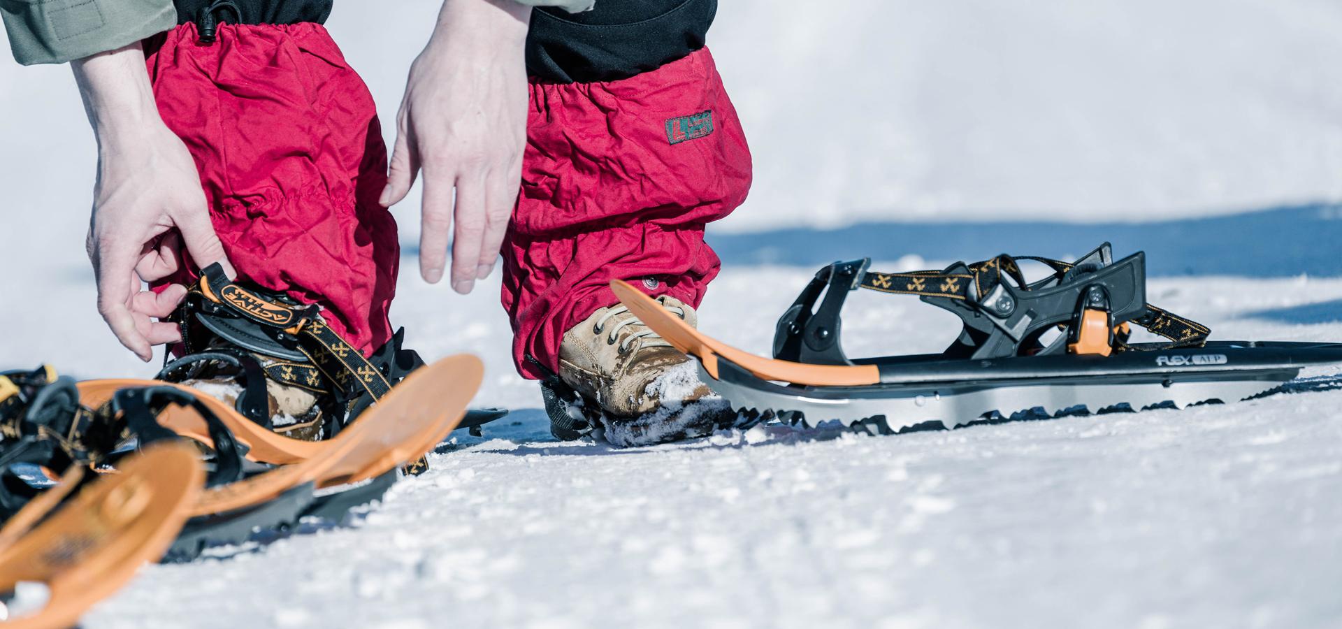 - Leihausrüstung Schneeschuhe, Stöcke, Gamaschen