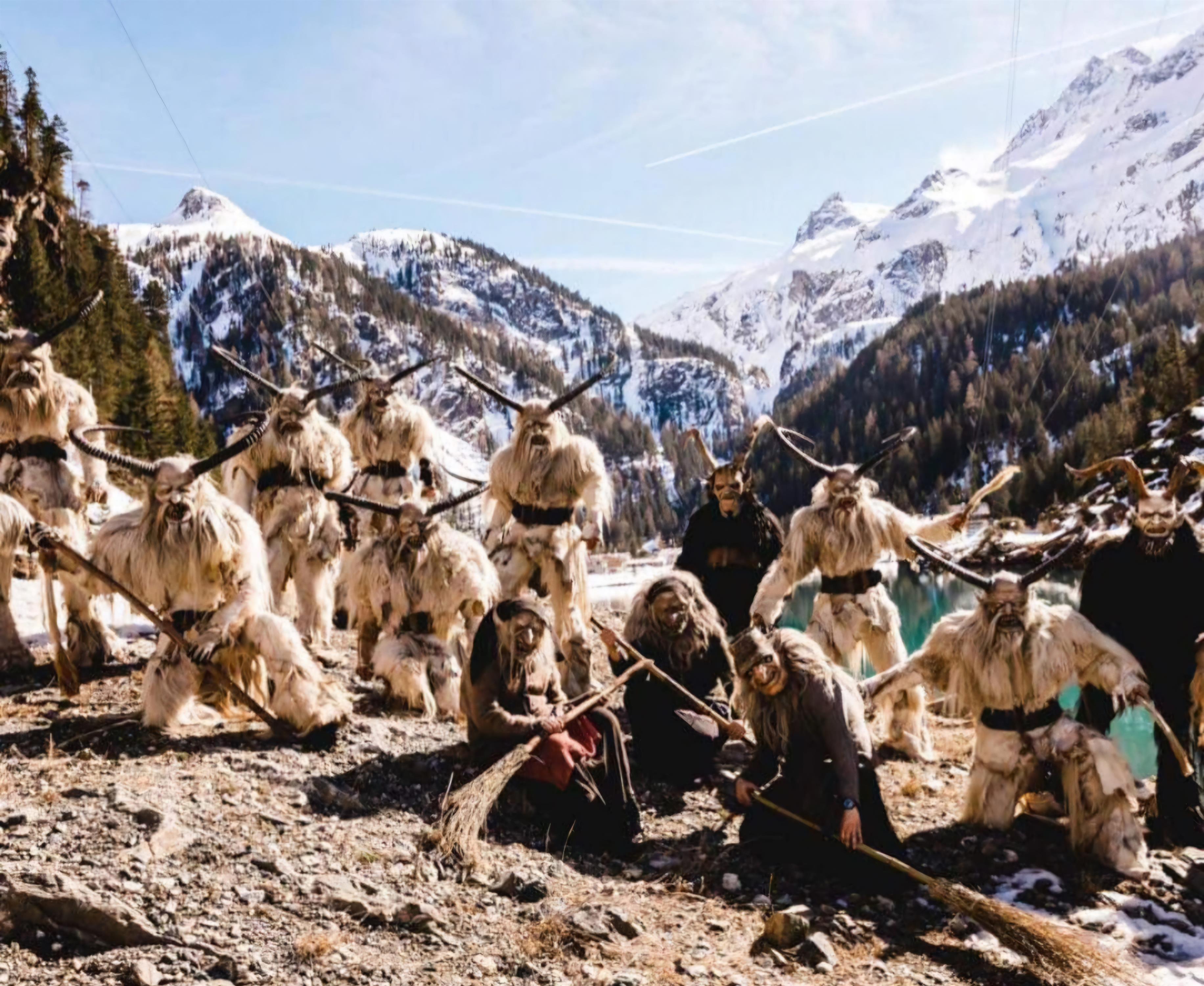 Krampusse ziehen unter lautem Lärm ihrer Glocken durch die Straßen.
