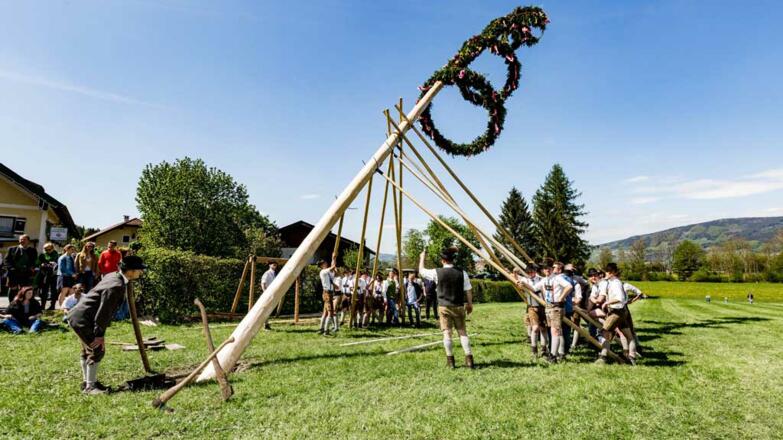 Der Trachtenverein freut sich auf zahlreichen Besuch und laden ein beim Aufstellen des Maibaumes kräftig zu unterstützen.