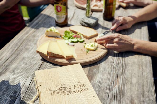 Gäste, die mit dem Alpbus anreisen, erhalten auf der Alpe ein kleines Glas mit frischer Alpmilch als Willkommensgruß.