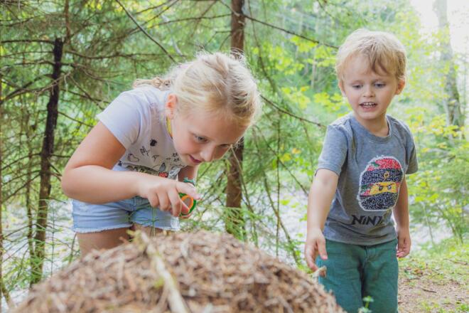 Zur Info: Da wir mit dem gewöhnlichen Umfeld der Natur in Berührung kommen empfehlen wir, dementsprechende Kleidung für die kleinen Entdecker vorzusehen.