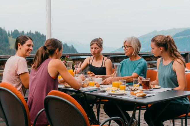 Mittwochs im Juli und August bringen uns die Seilbahnen Sonntag-Stein in luftige Höhen. Dort – auf der Sonnenterrasse von der Seilbahnstuba – gibt es eine Morgen-Yoga Einheit. Danach verwöhnt uns Jan und sein Team mit einem köstlichen Frühstück! Der Tag lädt dann noch ein, das Wandergebiet Sonntag-Stein zu entdecken.