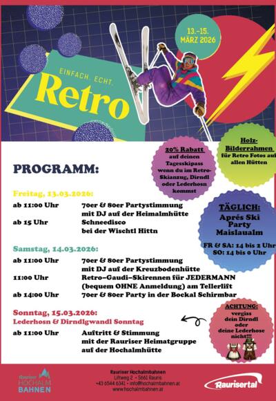 Historischer Ortsrundgang mit Fackeln durch Rauris. Im Rahmen des Ortsrundgangs erfahren Sie Wissenswertes über die einzigartige Geschichte des Raurisertals. Anmeldung: telefonisch bis 12 Uhr im Tourismusbüro Kosten: Erwachsene € 4,-; Kinder bis 15 Jahre € 2,-. Mit der Raurisertal Gästekarte & der Nationalpark Wintercard kostenlos., begrenzte Teilnehmerzahl. Bei Regen, starkem Schneefall, oder Wind findet die Wanderung nicht statt. Hunde sind nicht erlaubt! Die Führung ist nicht kinderwagentauglich und für Kinder ab 5 Jahren geeignet!