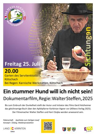 Vor der Filmvorführung, bis zum Einbruch der Dunkelheit, wird der Philosoph Gerd Holzheimer, der Initiator des Films, sein Buch Ein stummer Hund will ich nicht sein. Der Apfelpfarrer Korbinian Aigner (Allitera Verlag 2025) vorstellen und eine Einführung geben. Auch der Filmemacher Walter Steffen hat seine Teilnahme zugesagt und steht für ein Publikumsgespräch zur Verfügung.
