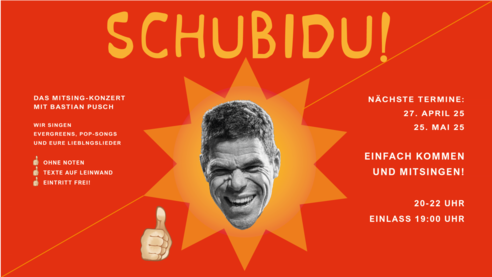 Dann bist du beim SCHUBIDU im Kulturhaus Milbertshofen genau richtig! Ab sofort einmal pro Monat wird der Saal des Kulturhauses zum Zentrum der guten Laune, wenn ihr querbeet eure Lieblingslieder singt: Pop-Songs, Schlager & Evergreens