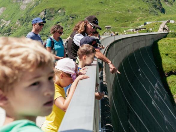 Bei der einstündigen Tour erfahren die Kinder spielerisch, was Gletscher sind, wie aus Wasser Strom erzeugt wird und begeben sich auf eine Entdeckungsreise in das Innere der 107 Meter hohen Moosersperre.