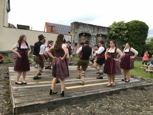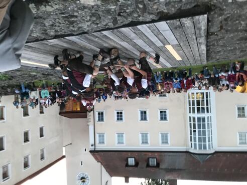 Bayerischer Abend im Schlosshof. Der Trachtenverein D´Eckstoana tritt mit verschiedenen Gruppen auf unter anderem mit der Kindertanzgruppe. Für die musikalische Unterhaltung sorgt die Band "Agrat". Natürlich darf auch der Auftritt des Hohenbogenchors nicht fehlen.