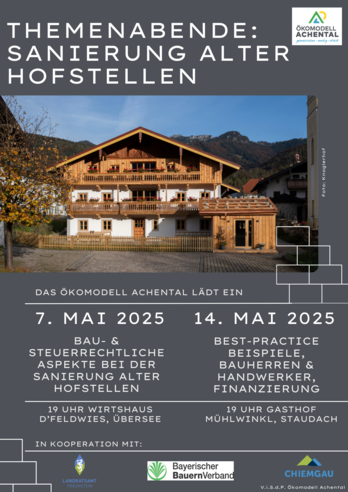 Wir freuen uns, Sie herzlich zur Veranstaltung „Bau- und steuerrechtliche Aspekte bei der Sanierung alter Hofstellen“ im Wirtshaus in Feldwies, Übersee, willkommen zu heißen.