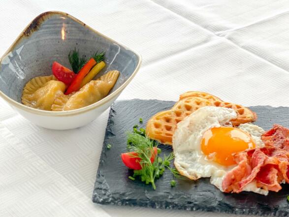 Ein gschmackiges Bauernbrot mit Wurst und Käse von heimischen Produzenten, ein frischer Smoothie, eine herzhafte Waffel oder eine klassische Süßspeise zum Essen an Bord oder Mitnehmen sind nur einige der Kreationen, auf die man sich freuen kann.