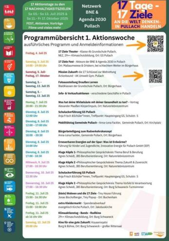 "17 Tage-17 Ziele: An die Welt denken - in Pullach handeln" Aktionswochen: Weitere Informationen, ausführliches, aktuelles Programm und Anmeldeinformationen: https://tinyurl.com/siebzehn-Ziele