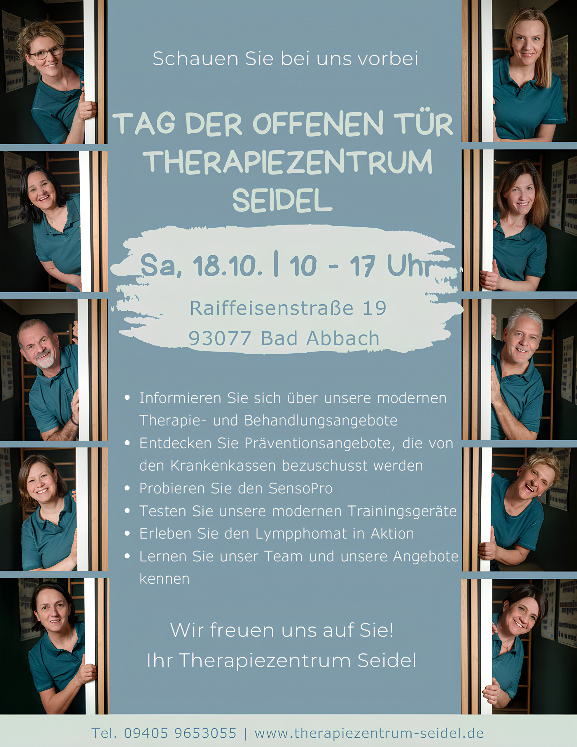 Entdecken Sie unsere modernen Therapie- und Behandlungsmöglichkeiten, informieren Sie sich über Präventionsangebote, die von Krankenkassen bezuschusst werden, und probieren Sie verschiedene Geräte direkt vor Ort aus.Highlights des Tages: