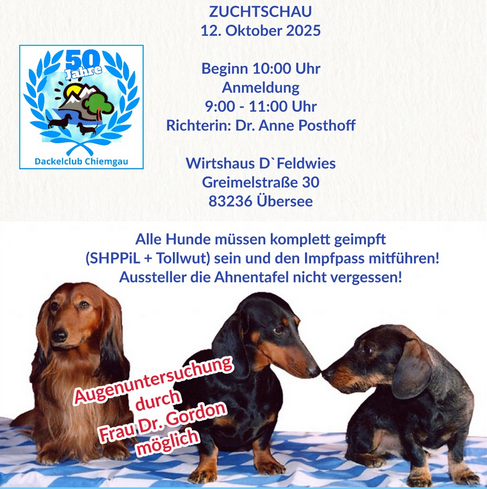 Unsere Dackel stellen sich im Saal vom Wirt d`Feldwies vor und würden sich über viele Zuschauer freuen.