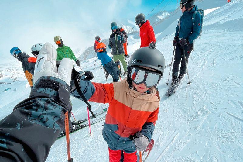 • Ski- oder Snowboardausrüstung sowie die entsprechende Bekleidung (wenn vorhanden: Park-/Allmountain- oder Freerideski – etwas breitere Kinderski für mehr Auftrieb)