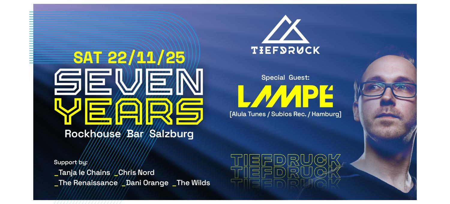 Das Event feiert sieben Jahre Tiefdruck, eine Veranstaltung, die seit 2018 für druckvollen Techno mit Minimal- und Psy-Einflüssen bekannt ist. Ein besonderes Highlight ist der Auftritt von Lampé aus Hamburg, dessen markanter, grooviger und treibender Techno perfekt ist, um die Nacht zu zelebrieren. Weitere Künstler sind Tanja le Chains, Chris Nord, The Renaissance, Dani Orange und The Wilds, die alle zur einzigartigen Atmosphäre beitragen.