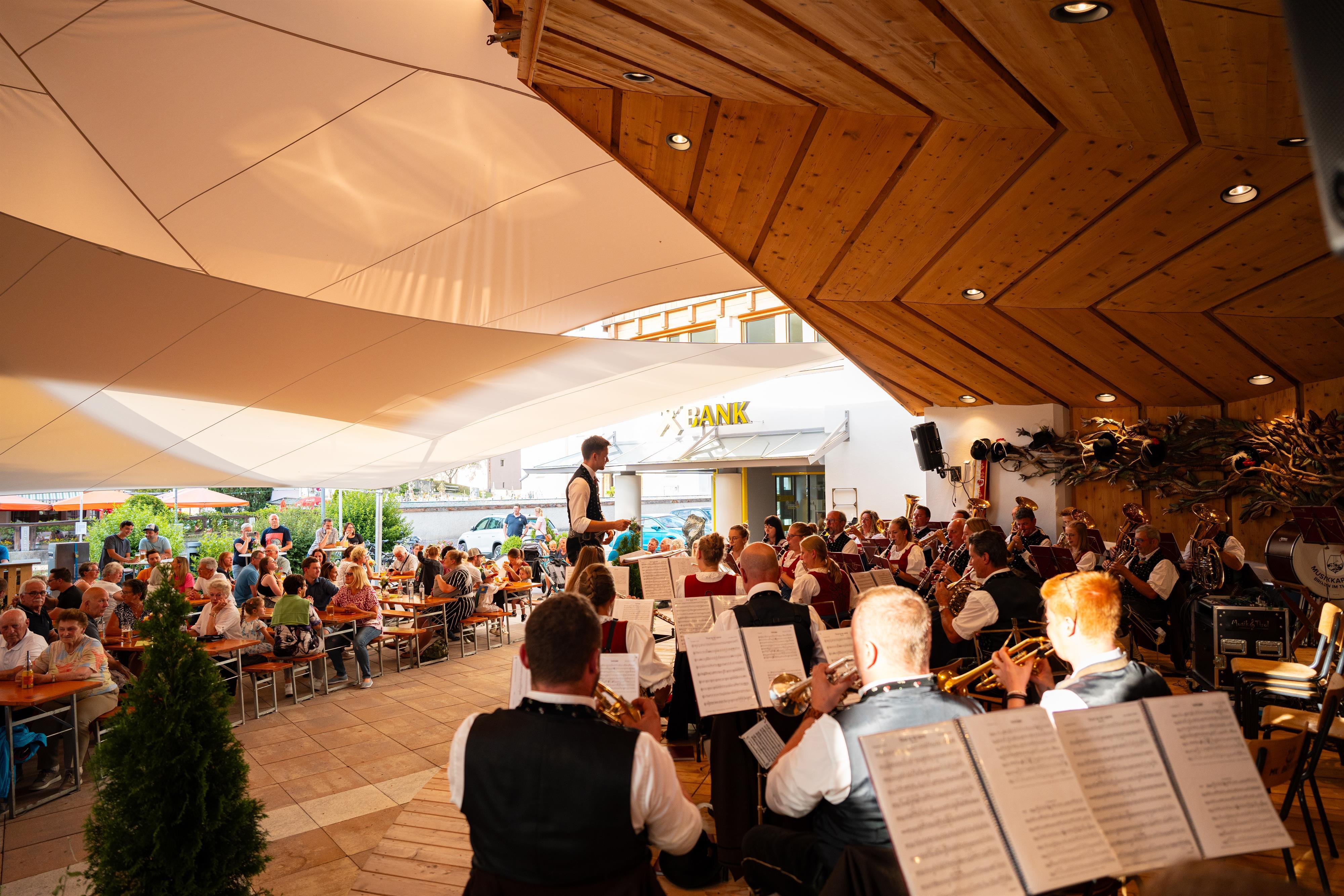 Genießen Sie die einladende Atmosphäre, während Sie von der Musikkapelle Brixen im Thale unterhalten werden.