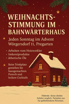 Bei „Einfach Ausspannen“ in Wörgersdorf 11, beim Bahnwärterhaus in Pregarten, erwarten Sie jeden Sonntag im Advent stimmungsvolle Momente bei Kerzenlicht und Kaminfeuer. Entdecken Sie liebevoll gefertigte Handarbeiten vom Hoizwerkler, ätherische Öle aus eigener Produktion und viele weitere einzigartige Geschenkideen, die Herz und Sinne berühren
