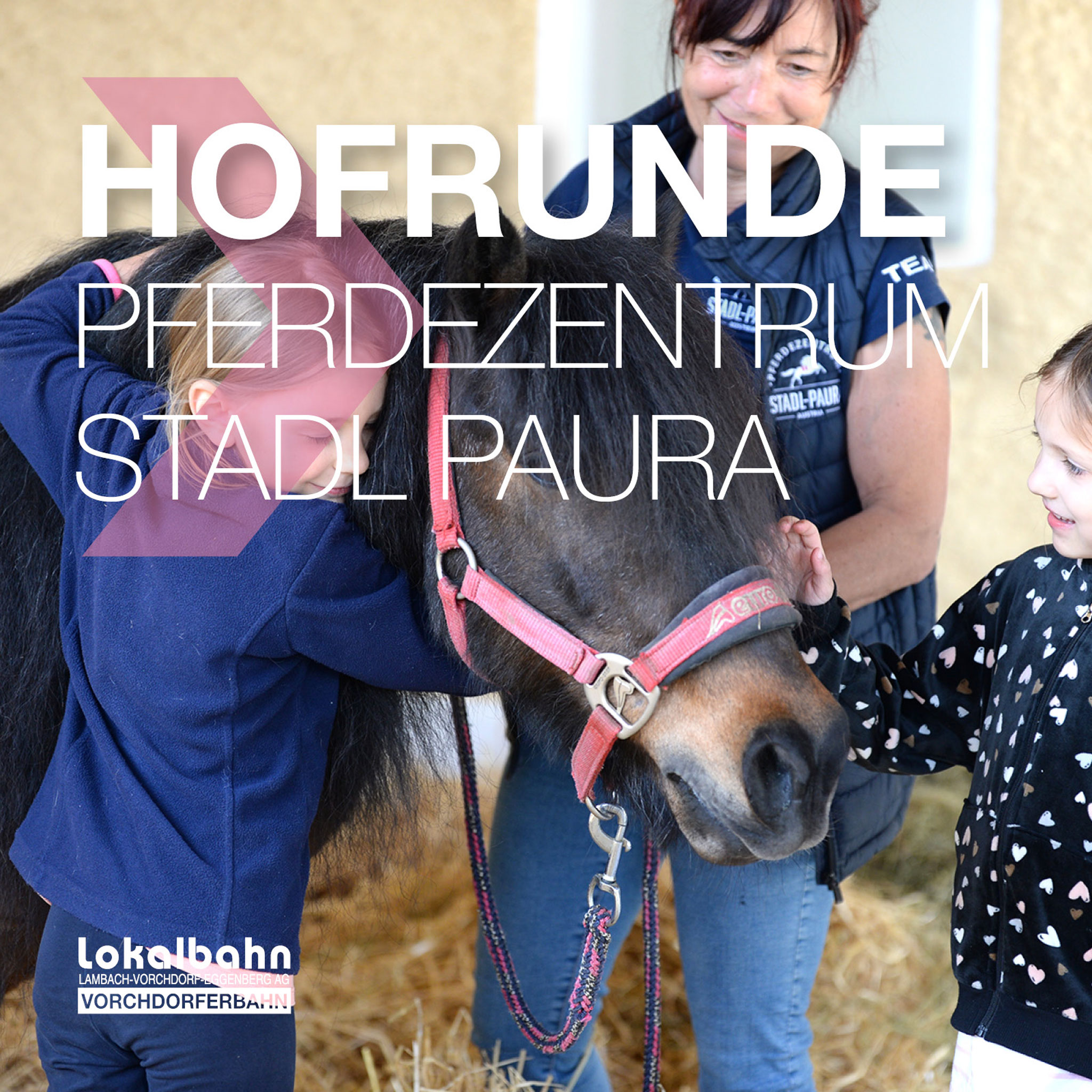 | Preisinformation | Der Eintritt zur Hofrunde ist kostenlos, lediglich für das Ponyreiten und die Kutschenfahrten werden familienfreundliche Beiträge eingehoben (je 3€). Bei Gruppen ab 10 Personen wird um Anmeldung gebeten. Für Schulklassen und Kindergärten kann die Hofrunde auch unter der Woche gebucht werden. Hier bitten wir um eine Anfrage an kundenservice@pferde-stadlpaura.at. |