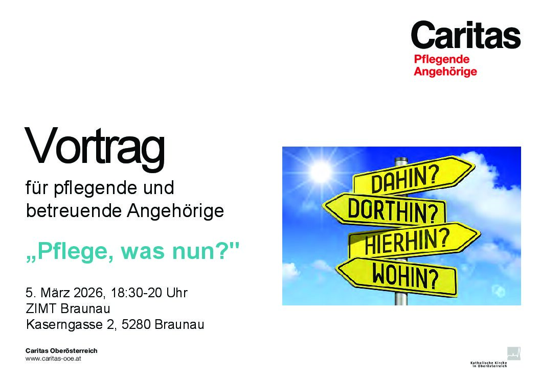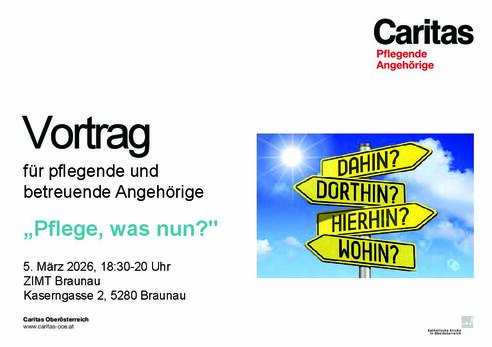An diesem Abend werden diese und weitere Fragen zu wesentlichen Unterstützungsleistungen in der Pflege und Betreuung geklärt. Und Sie erfahren auch, welche Angebote und Anlaufstellen es speziell für betreuende und pflegende Angehörige im Bezirk Braunau gibt. Zudem gibt es Infos zum Thema Pflegegeld und zu Möglichkeiten zur Vereinbarung von häuslicher Pflege und Erwerbstätigkeit.