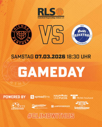Am 17. Spieltag der 2. Regionalliga Süd empfangen die Chiemgau Panthers den Drittplatzierten TV 1847 Augsburg in ihrer AKG-Sportarena. Das Hinspiel konnten die Basketballer des TV Traunstein gewinnen und wollen nun auch zu Hause die Punkte holen.