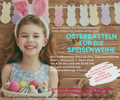 Alle Kinder aus Pfarrwerfen sind herzlich eingeladen zum Osterbasteln für die Speisenweihe!