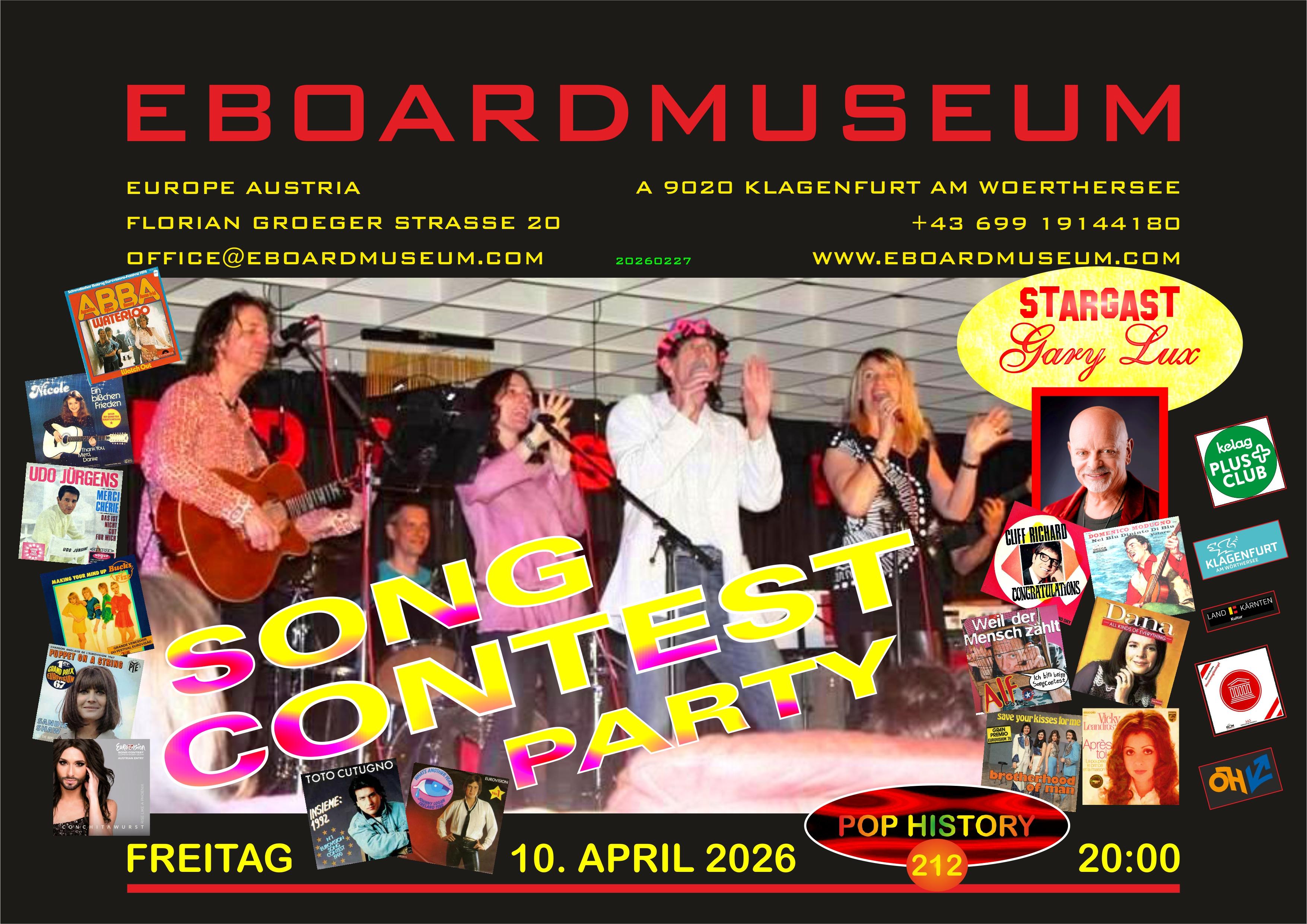 Die unvergleichlich unterhaltsame SONG CONTEST PARTY Folge 6 im Eboardmuseum mit einem einzigartigen Querschnitt von einst bis heute !!!