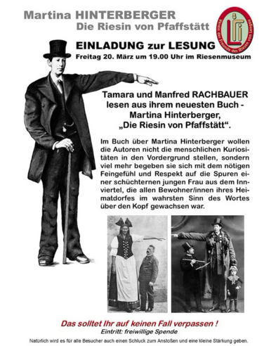 Kurios die Lebensgeschichte der „Riesin von Pfaffstätt, Martina Hinterberger“, aber sehr sehr traurig. Für eine Frau der damaligen Zeit war es ein besonders schlimmes Schicksal, das „Anders sein“ zu leben.