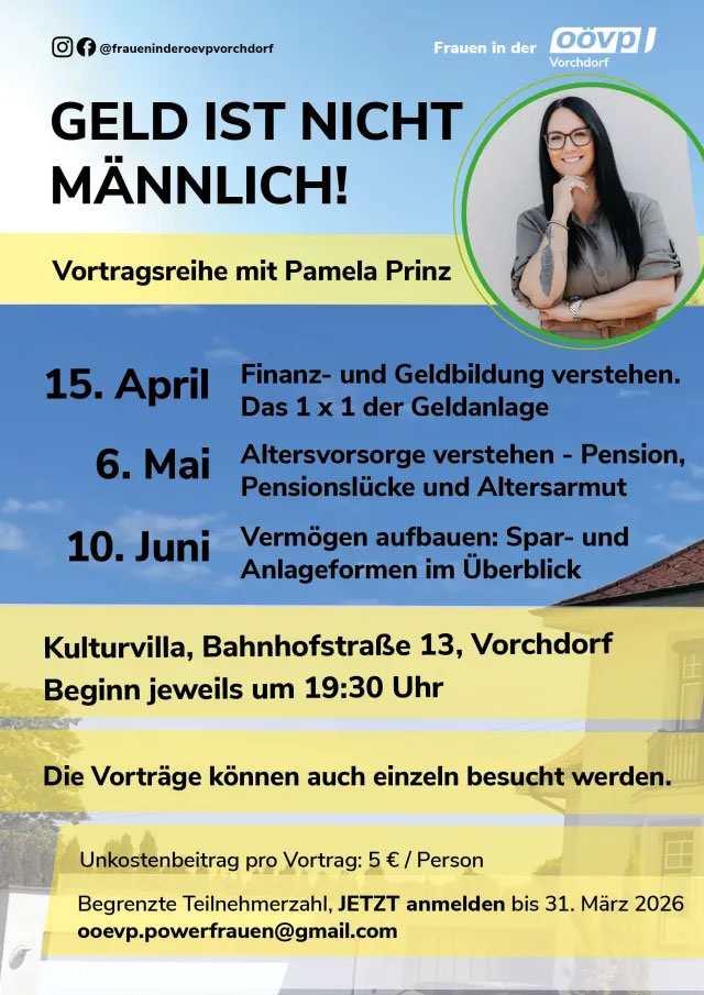 Die Vorträge können auch einzeln besucht werden. Begrenzte Teilnehmerzahl, JETZT anmelden bis 31.03.2026: ooevp.powerfreuen@gmail.com